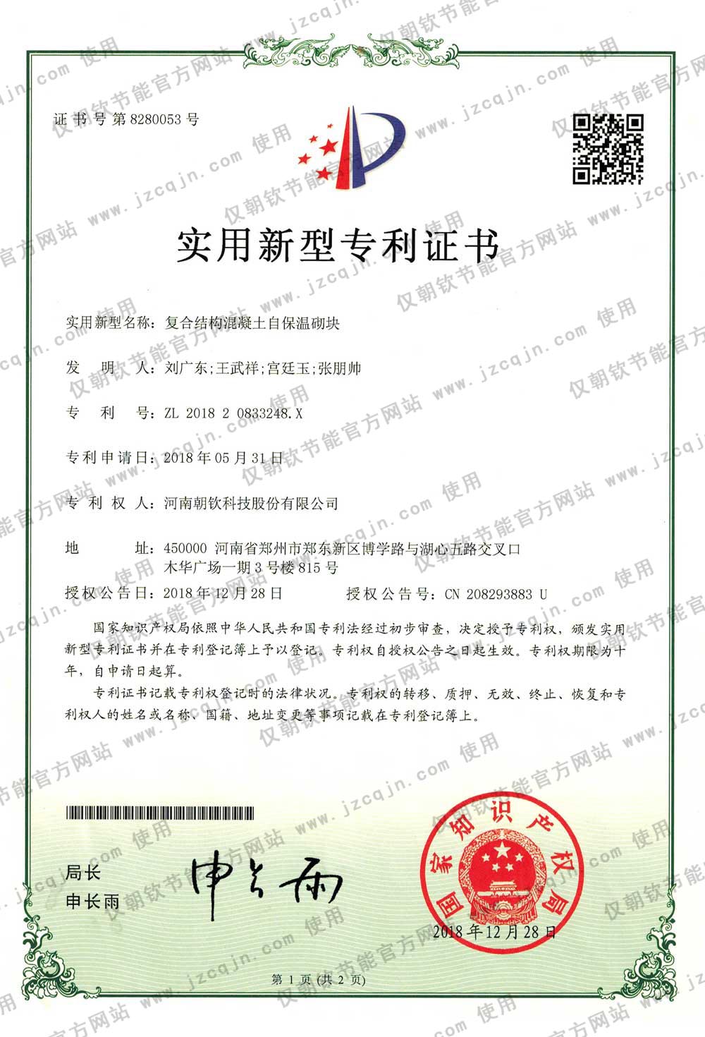 朝欽節(jié)能擁有數(shù)十項(xiàng)科研成果與專利,及河南省建設(shè)廳等機(jī)構(gòu)鑒定證書,并發(fā)布了數(shù)項(xiàng)企業(yè)標(biāo)準(zhǔn)。